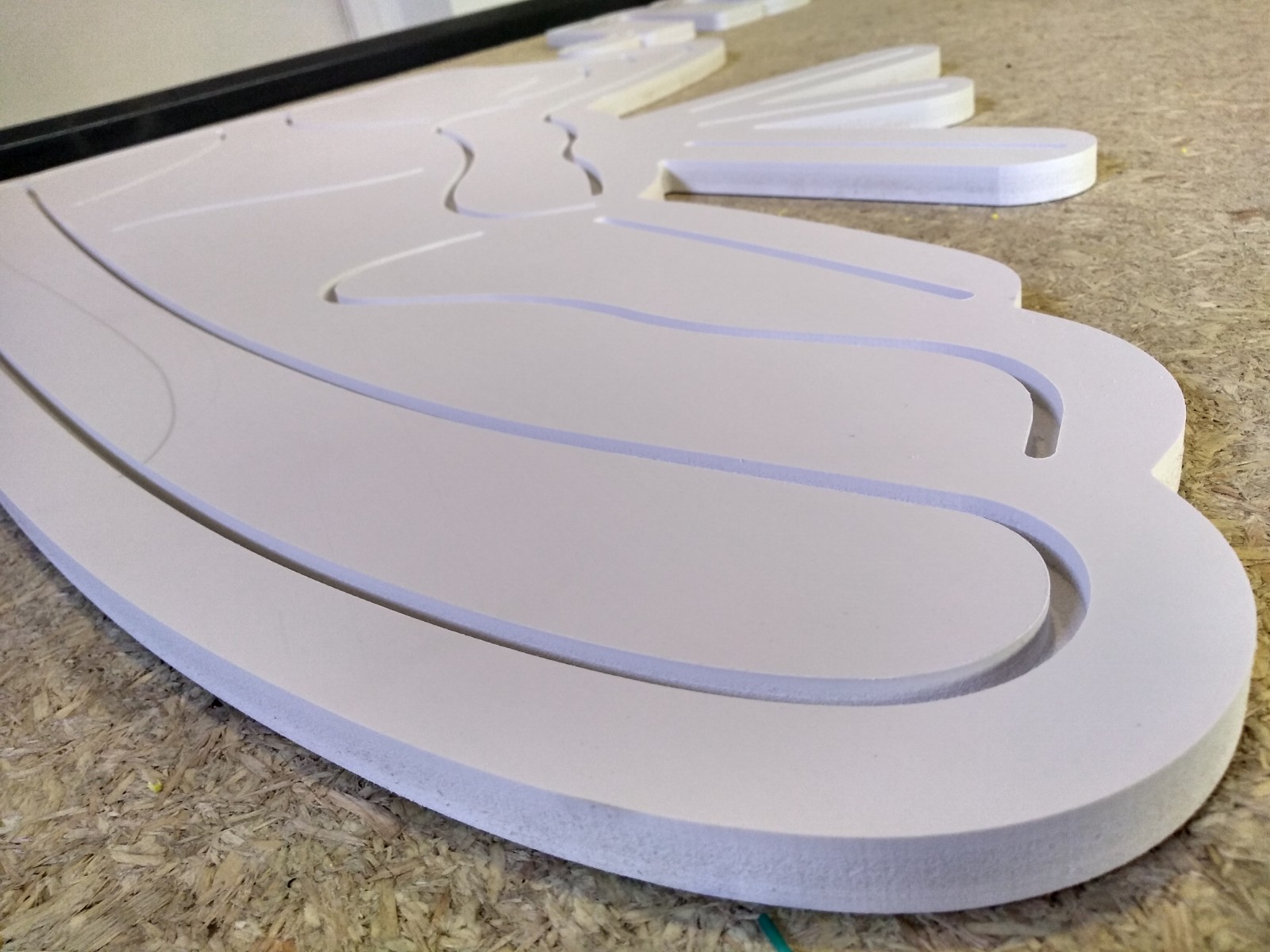 Cortes 2D com projetos chapados de corte, rebaixo, desbaste e entalhe, e cortes em 3D para moldes com projetos mais trabalhados.